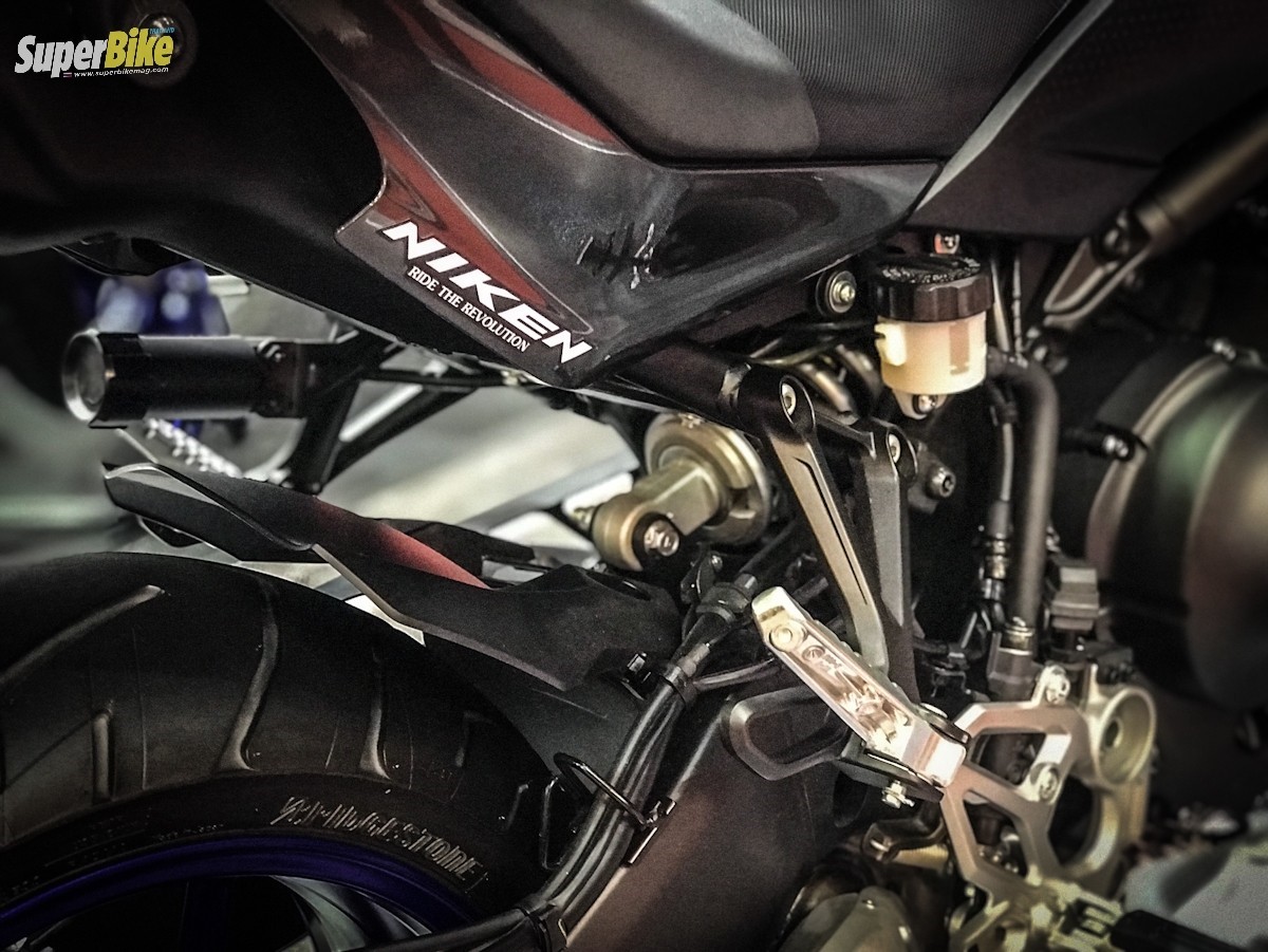 อีหหนึ่งโมเดลที่เตรียมจัดจำหน่ายในไทย สำหรับเจ้า Yamaha Niken RIDE THE REVOLUTION มอเตอร์ไซค์บิ๊กไบค์ 3 ล้อ เครื่องยนต์ Cross Plane Crankshaft ขนาด 900 ซีซีโดยใช้พื้นฐานเครื่องยนต์เดียวกันกับเจ้า Yamaha MT-09