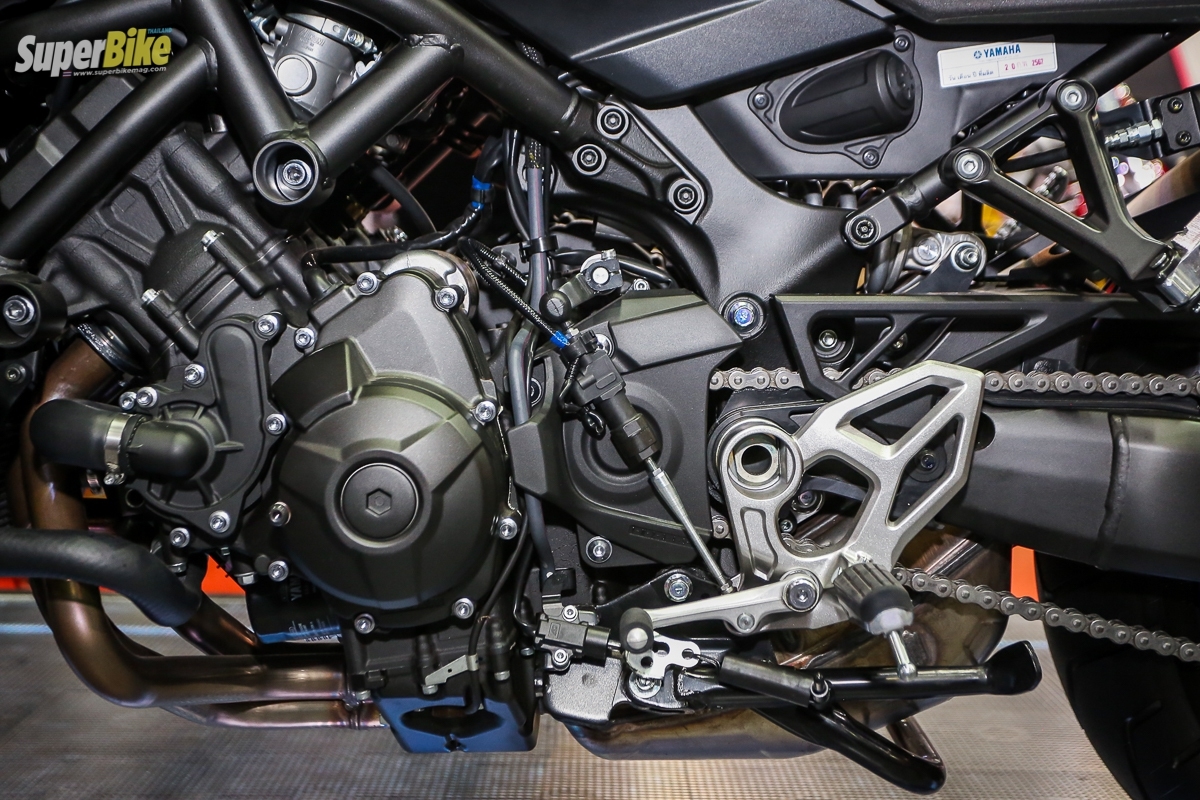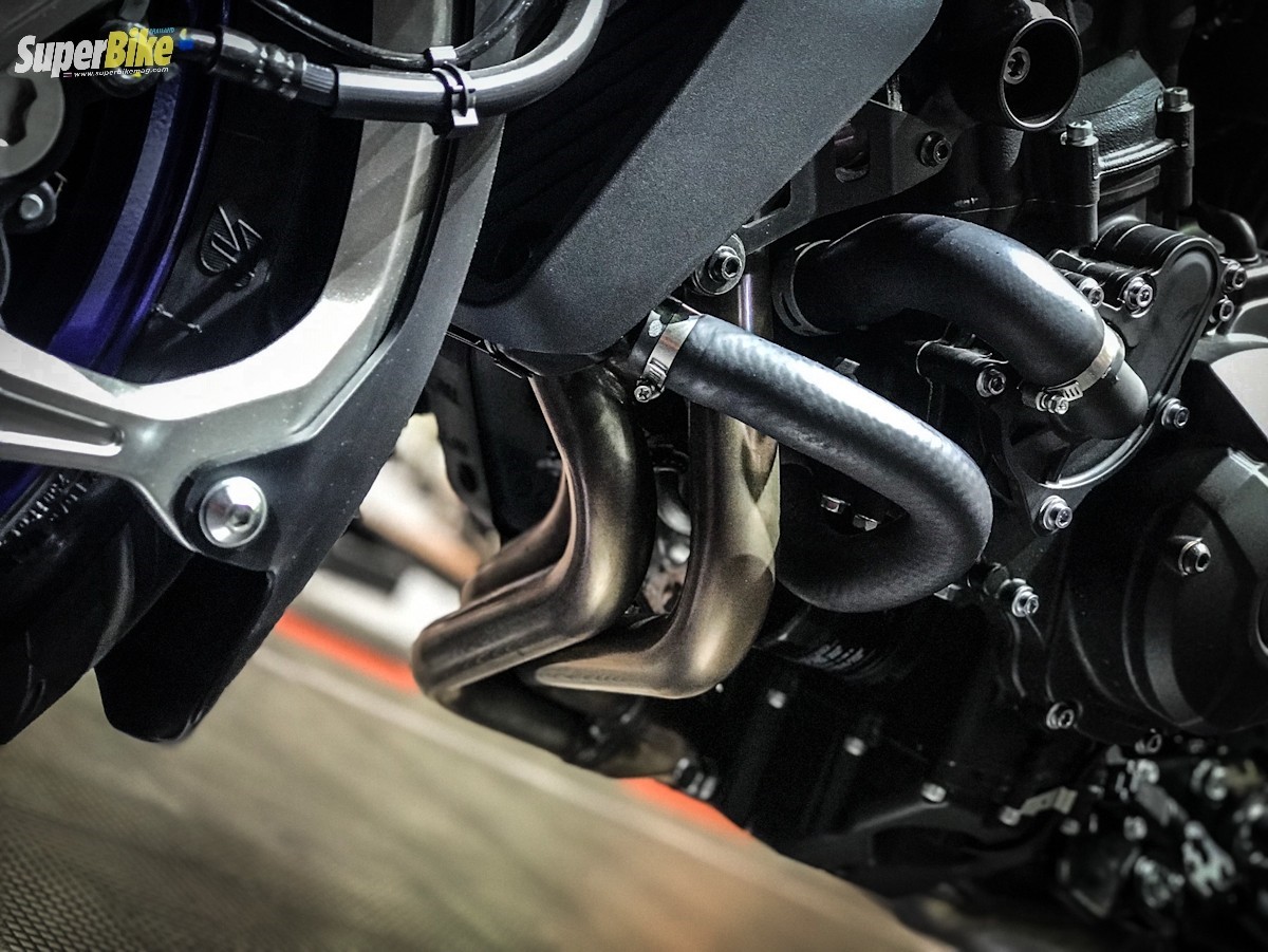 เครื่องยนต์ Cross Plane 3 สูบ (CP3) ขนาด 847 ซีซี ระบายความร้อยด้วยน้ำ เกียร์ 6 สปีด มีแรงม้าสูงสุดอยู่ที่ 115 แรงม้าที่ 10,000 รอบ/นาที ให้แรงบิดที่ 87.5 นิวตันเมตร ที่ 8,500 รอบ/นาที ระบบส่งกำลังขับเคลื่อนแบบโซ่ พร้อบกับท่อไอเสีย ที่ถูกดีไซน์ออกกลางตัวรถ