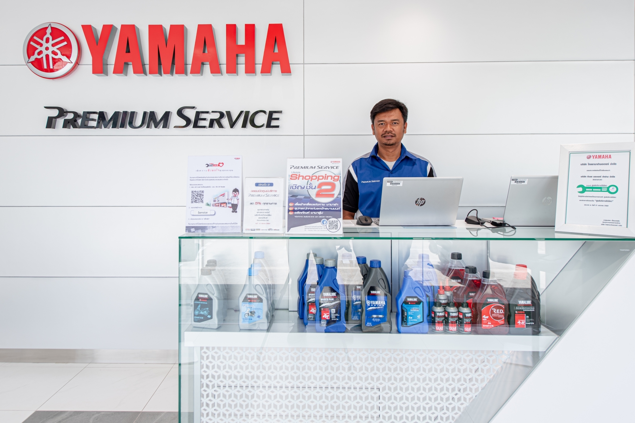 ศูนย์บริการ ยามาฮ่า พรีเมียม เซอร์วิส แห่งนี้ พร้อมให้บริการแก่ลูกค้ายามาฮ่า ด้วยเจ้าหน้าที่ผู้ชำนาญการจาก บริษัท ไทยยามาฮ่ามอเตอร์ จำกัด พร้อมกับแท่น Service ระดับมาตรฐาน พร้อมให้การบริการตรวจเช็คระบบเครื่องยนต์ด้วย YDT (Yamaha Diagnosis Tool) ผ่านระบบคอมพิวเตอร์ให้กับรถจักรยานยนต์ทุกคัน ด้วยช่างซ่อมจากสำนักงานใหญ่ยามาฮ่าที่ผ่านการฝึกอบรมตามมาตรฐาน YTA Silver ถึงระดับ Gold ที่เป็นมาตรฐานสูงสุดของการอบรมช่างในปัจจุบัน