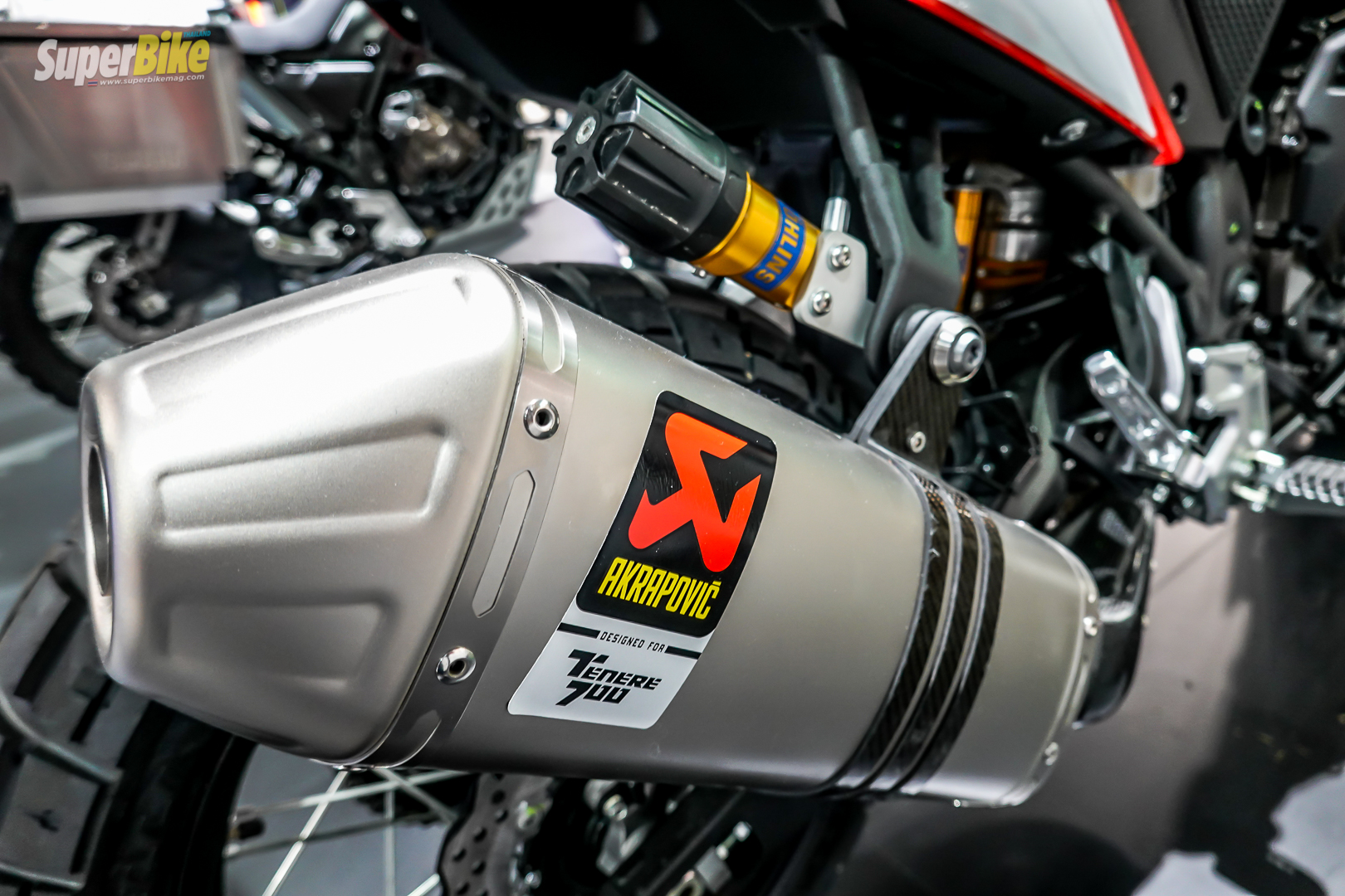 มาต่อกันที่ท่อไอเสียที่เป็นของแต่งตรงรุ่นจากโรงงาน แบรนด์ Akrapovic for Tenere 700 ที่ออกแบบและพัฒนามาคู่บุญกับโมเดลนี้เลย สำหรับผมแล้วถือว่าลงตัวดูมากๆเลยละครับ รู้สึกได้ถึงฟิว dakar rally