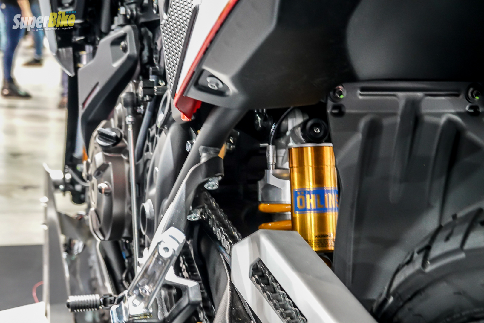 - โช้คหลังเดี่ยวแบบ คอล์ยสปริง (ในรูปคือของแต่ง Ohlins)