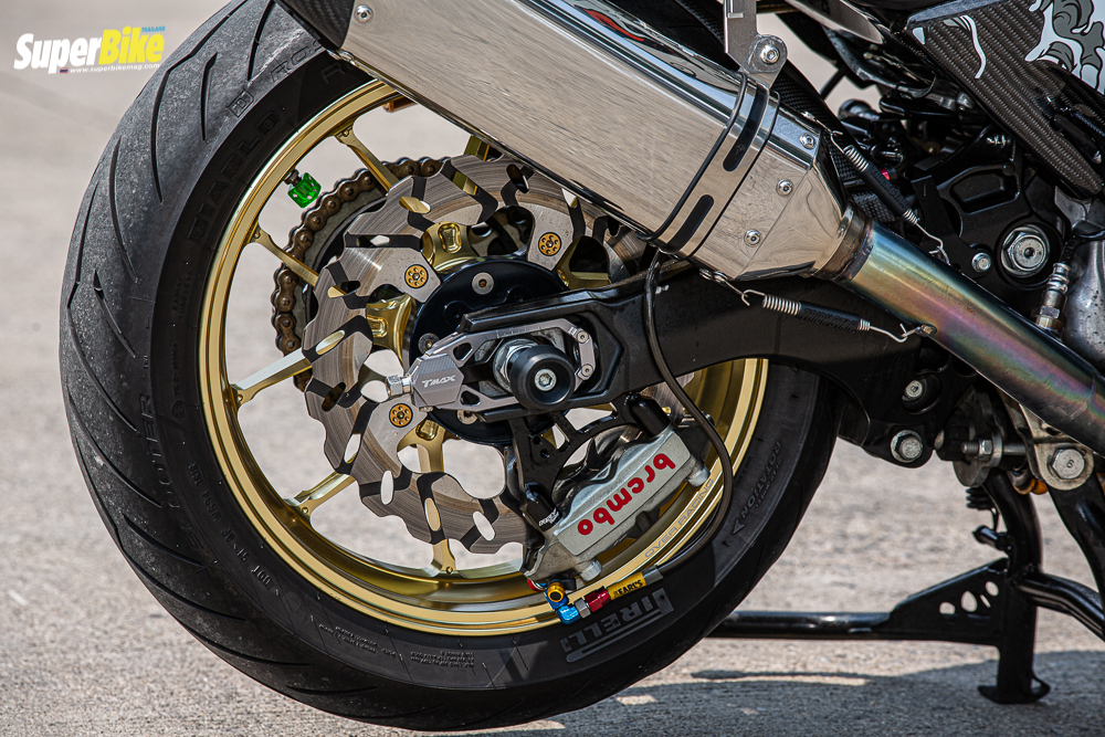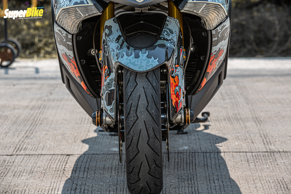 จานหลังแต่ง งานนำเข้า – ขาปั้มหลัง CNC สั่งตัด RSV – ปั้มหลัง Brembo M4 100mm – สายถักหลัง earl’s – กันล้มล้อหลัง Rsv – อีกอย่างที่ผมเลือกใช้คือยาง Pirelli Diablo Rosso Scooter เจอชุดนี้เข้าไปนอกจากการขับขี่ที่ดีแล้วยังเพิ่มความมั่นใจอีกด้วยครับ อะไหล่ที่เปลี่ยนถ้าเปลี่ยนแล้วดีกว่าเดิมเปลี่ยนเถอะครับ