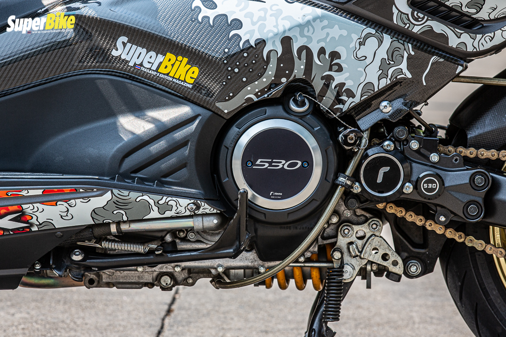 ชุดขับโซ่ พร้อมสเตอร์ เกรด USA by เป้โมโต – ครอบโซ่แต่ง SBMcarbon – ฝาครอบแต่งสวิงอาร์มหลัง Rizoma – ตั้งสายพานแต่ง สาเหตุที่เอาสายพานออกเพราะความชอบครับถึงแม้เสียงจะดังเวลาขับขี่ แต่เรื่องการออกตัวและการขับขี่ อะไรหลายๆอย่างทำได้ดีกว่าในส่วนตัวตอบโจทย์กับการใช้งานของผมครับ